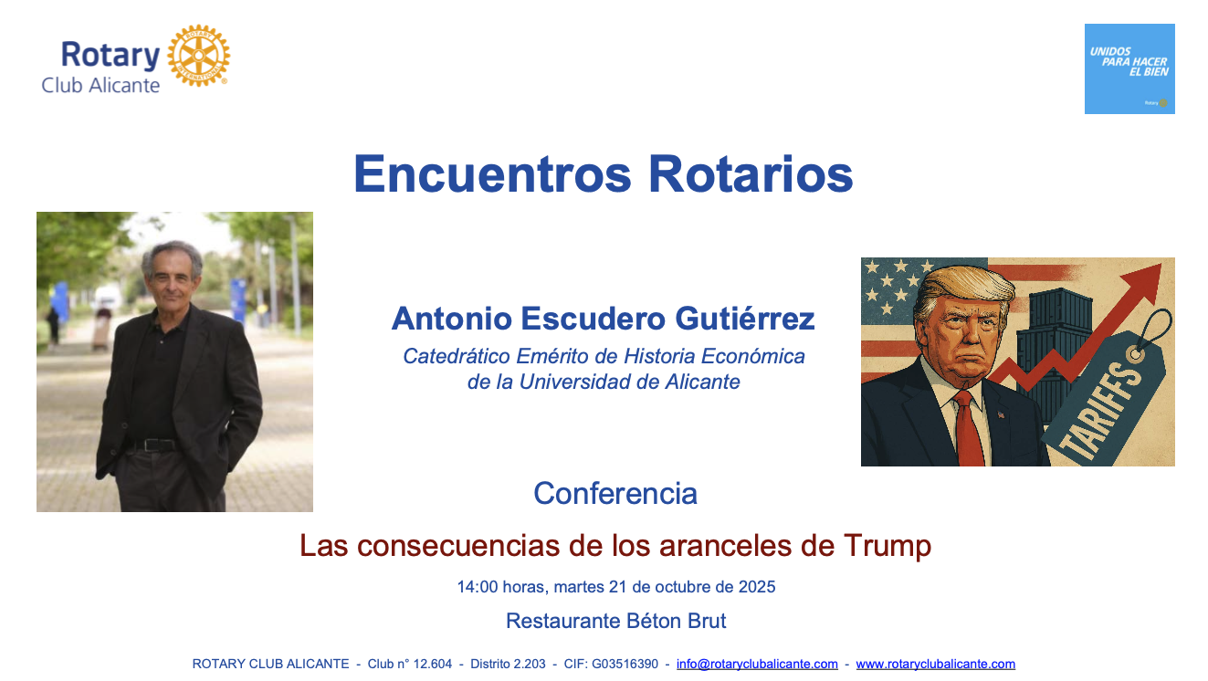Nuestro invitado pronunciará la conferencia del próximo 21 de octubre de 2025 del Rotary Club Alicante. El desarrollo del encuentro se inicia con un acto informal de recepción de invitados […]